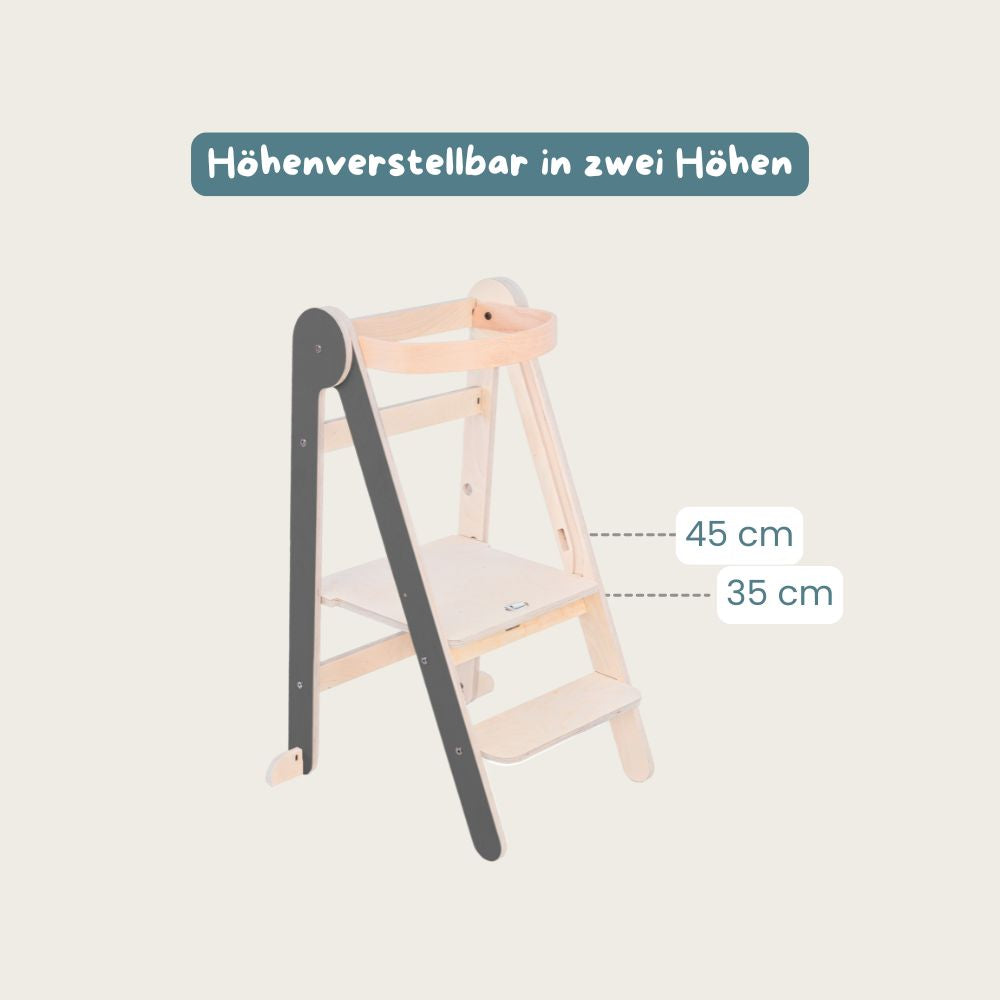 Dieses praktische Design kann einfach zusammengeklappt und in der Höhe verstellt werden, um sich dem Wachstum deines Kindes anzupassen. Ideal, um schon im frühen Alter bei alltäglichen Dingen mitzuhelfen und die Selbstständigkeit und Neugier deines Kindes zu fördern, während Stil, Sicherheit und Langlebigkeit gewährleistet sind.